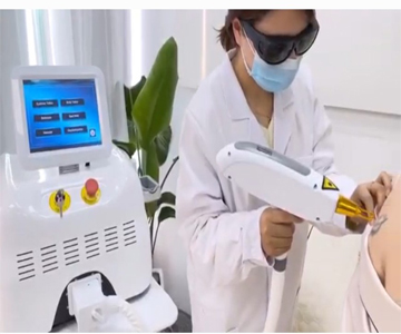 Thực hiện xóa xăm: Sử dụng máy laser chiếu tia sáng lên vùng da có xăm.