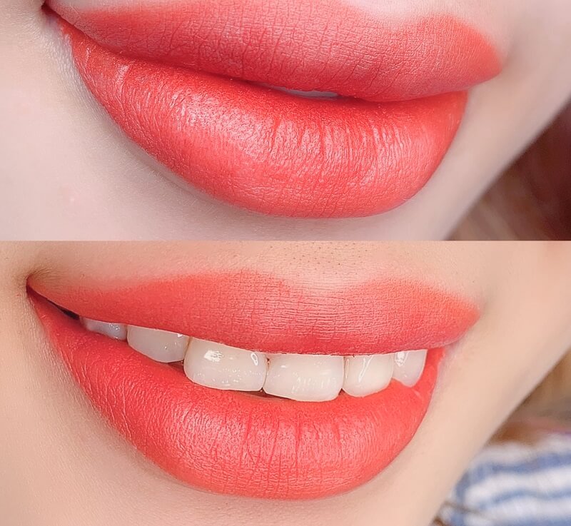 Ứng dụng kỹ thuật phun xăm Hàn Quốc giúp khử thâm đều màu, lên sắc môi tự nhiên, mềm mịn.